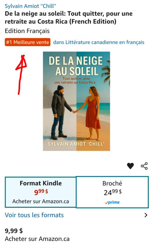 À peine quelques heures après sa sortie, une grande surprise m’attendait : le livre est déjà devenu Meilleure vente #1 en littérature canadienne en français, #2 en guides de voyage d’Amérique centrale, #1 en guides de voyage sur le Costa Rica, et même #8 en réussite personnelle ! ✨
